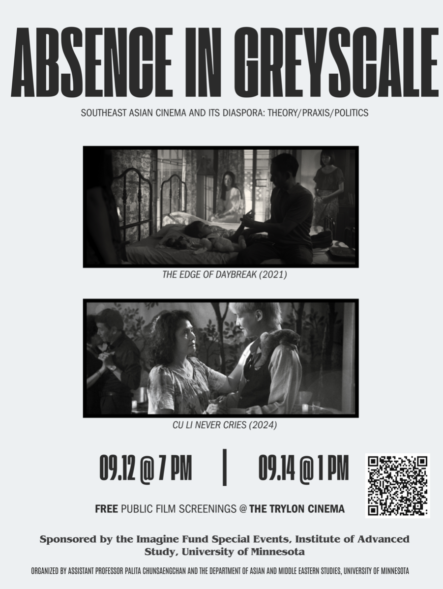 This September, I am organizing ABSENCE IN GREYSCALE — public screenings of two Southeast Asian films, The Edge of Daybreak (2021) dir. Taiki Sakpisit; and Cu Li Never Cries (2024) dir. Phạm Ngọc Lân. Please follow the links above to see more information about the films and to reserve your ticket(s) if you are in Minneapolis. It is my great pleasure and my honor to announce that it will be the first time that The Edge of Daybreak will be screened in the US, and the first time for Cu Li Never Cries to be screened in the Midwest. I hope you can join us to celebrate these occasions.